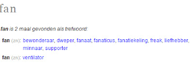 ‘Bewonderaar’? Klinkt een beetje eng. ‘Supporter,’ het is geen voetbalclub. ‘Freak,’ mwoah, ‘fanaticus,’ nee. Het enige woord wat er tussenstaat en geen bijsmaak heeft is ‘ventilator,’ maar dat dekt niet echt de lading.